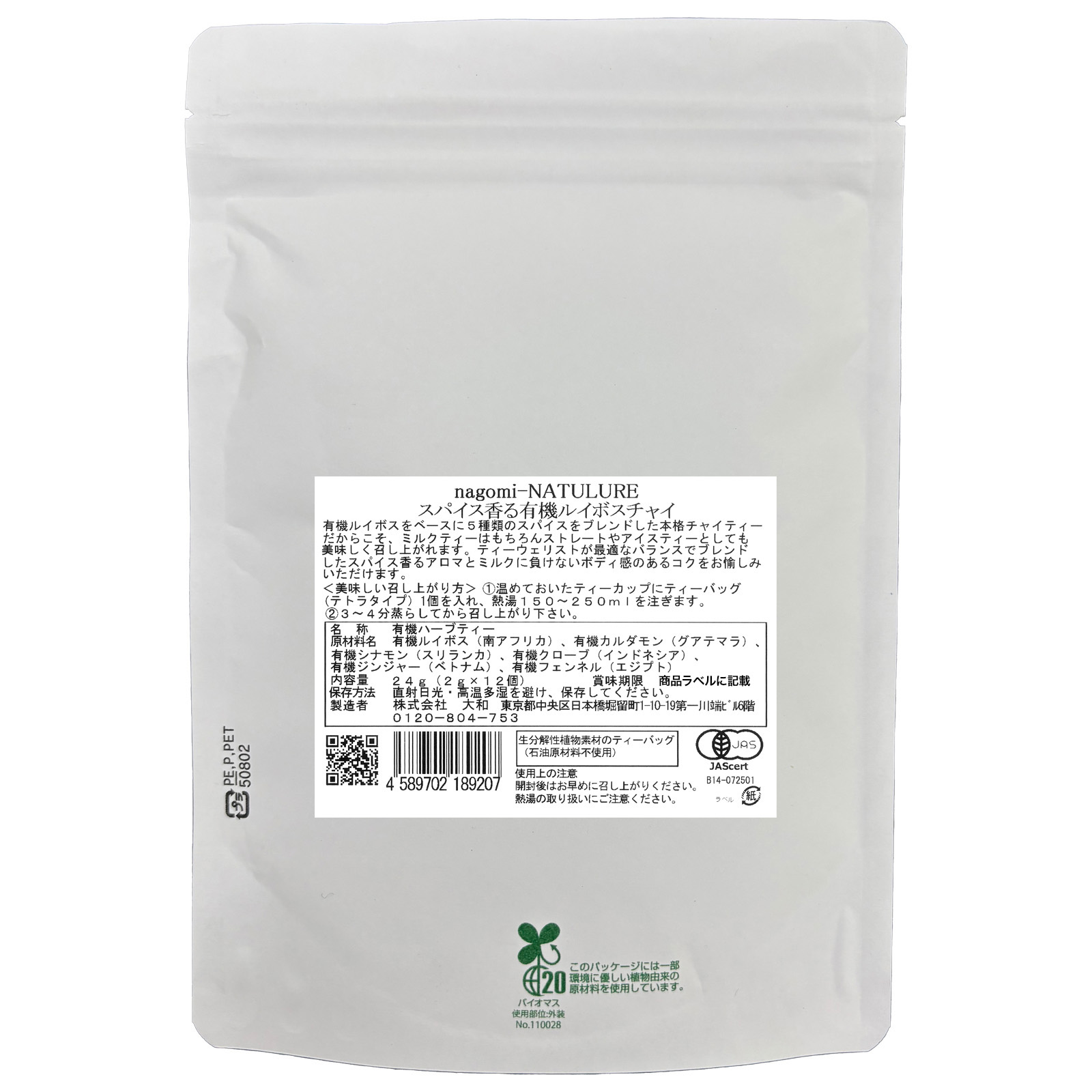 スパイス香る有機ルイボスチャイ(ティーバッグ12個) [4589702189207-1]