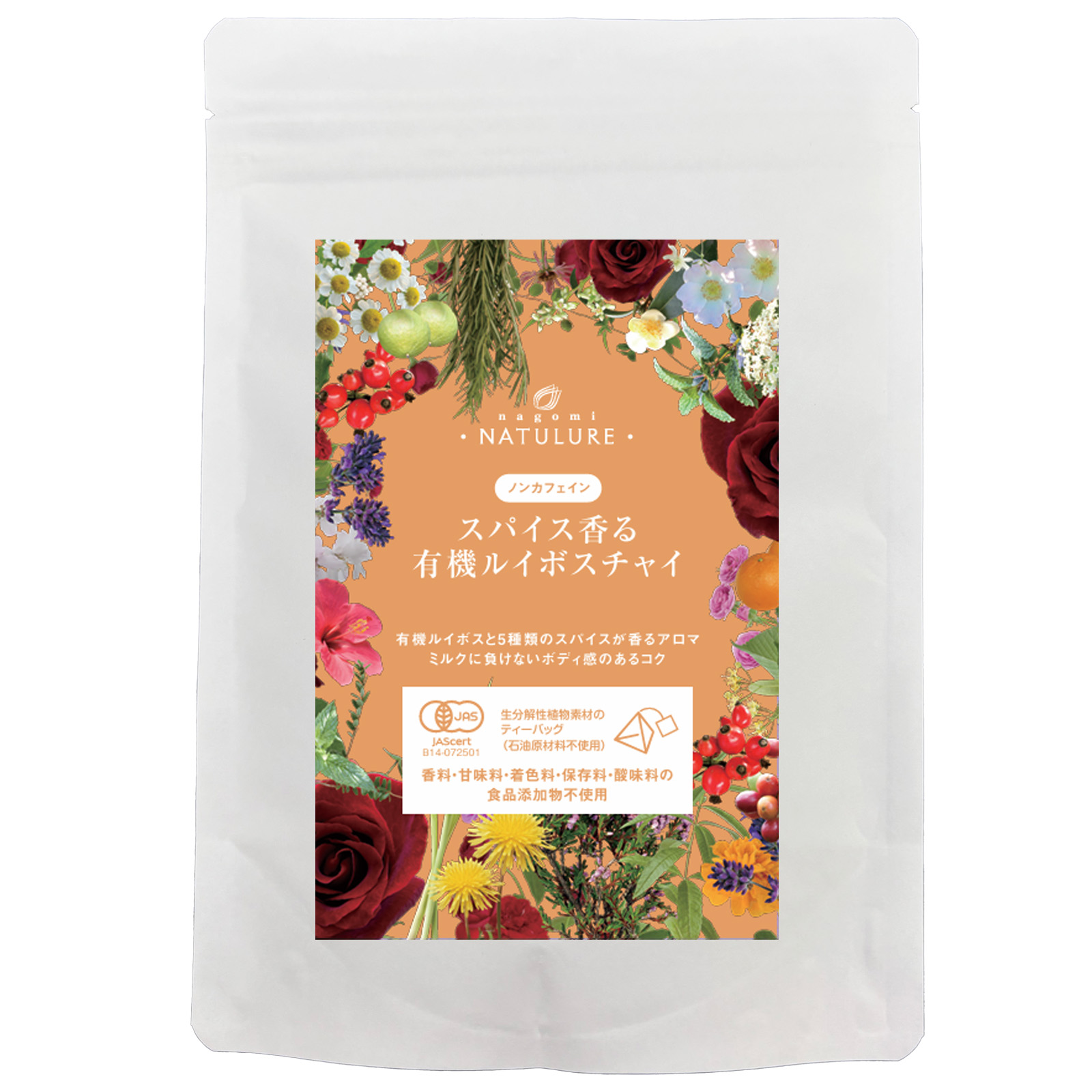 <原材料名:有機ルイボス(南アフリカ)/有機カルダモン(グァテマラ)/有機シナモン(スリランカ)/有機クローブ(インドネシア)/有機ジンジャー(ベトナム)/有機フェンネル(エジプト)>